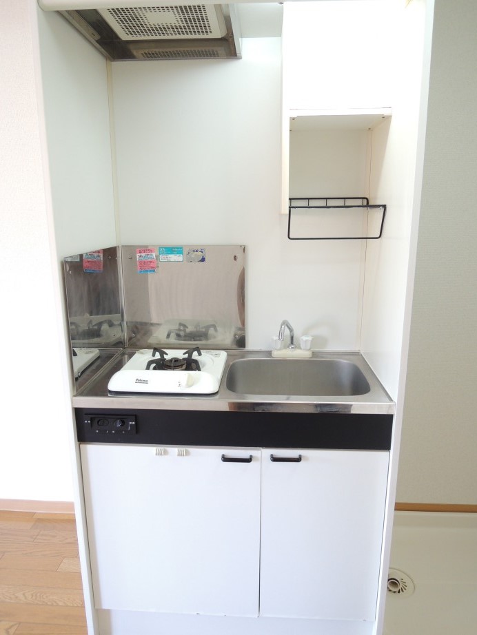 2口ガスコンロ&システムキッチンでテキパキと調理できます。