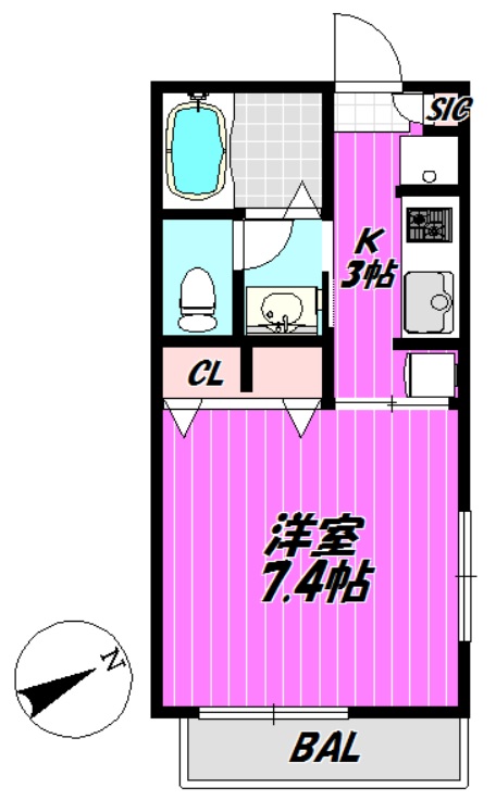 室内は綺麗です。 7.4帖の室内はゆとりのある広さです。