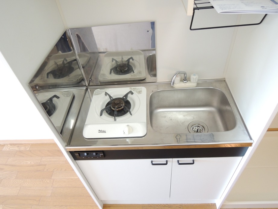 キッチンはコンパクトですが、1人分の食事を作るには十分です。