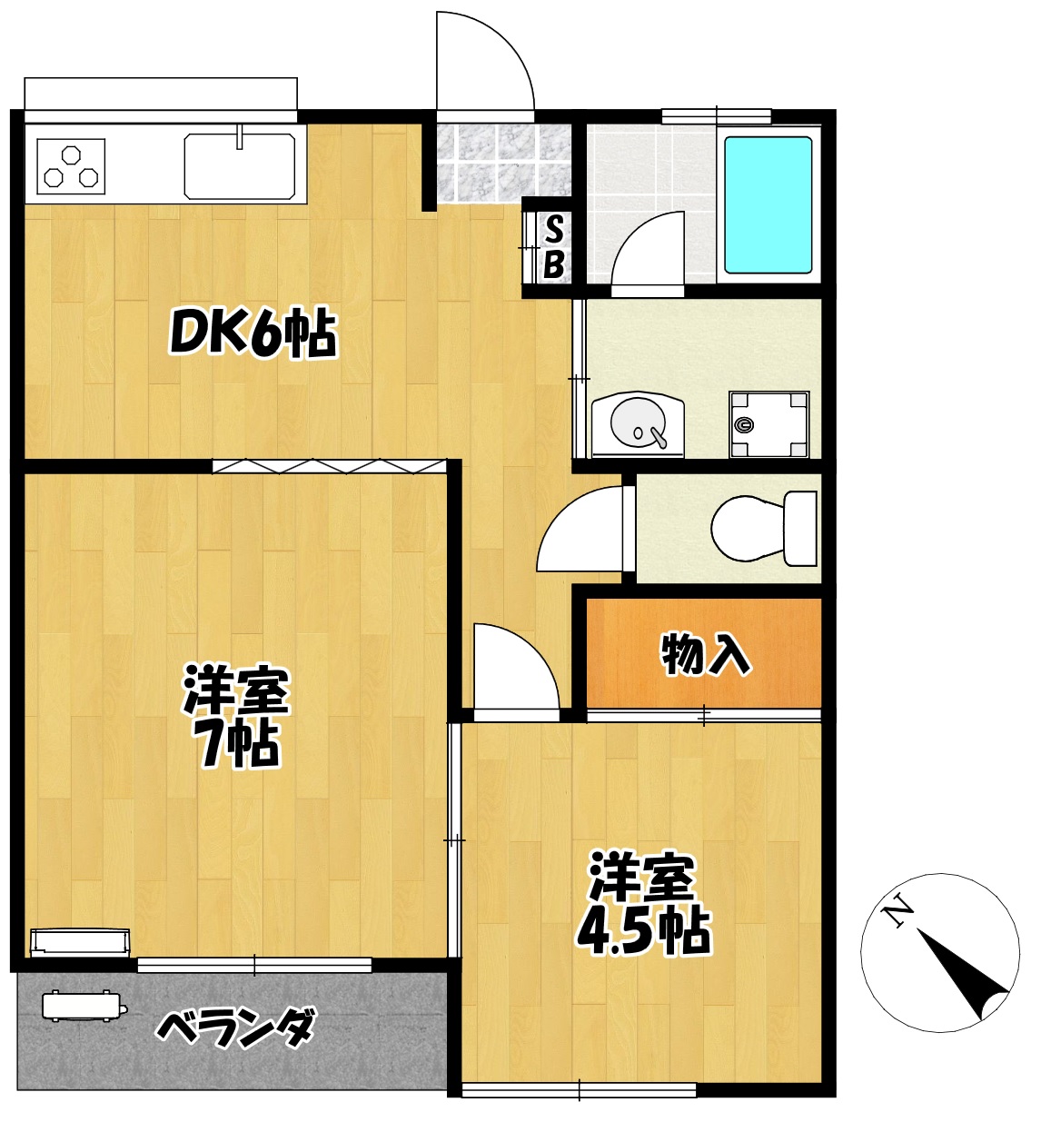 室内は綺麗で7.5帖の洋室はゆったりの広さです。