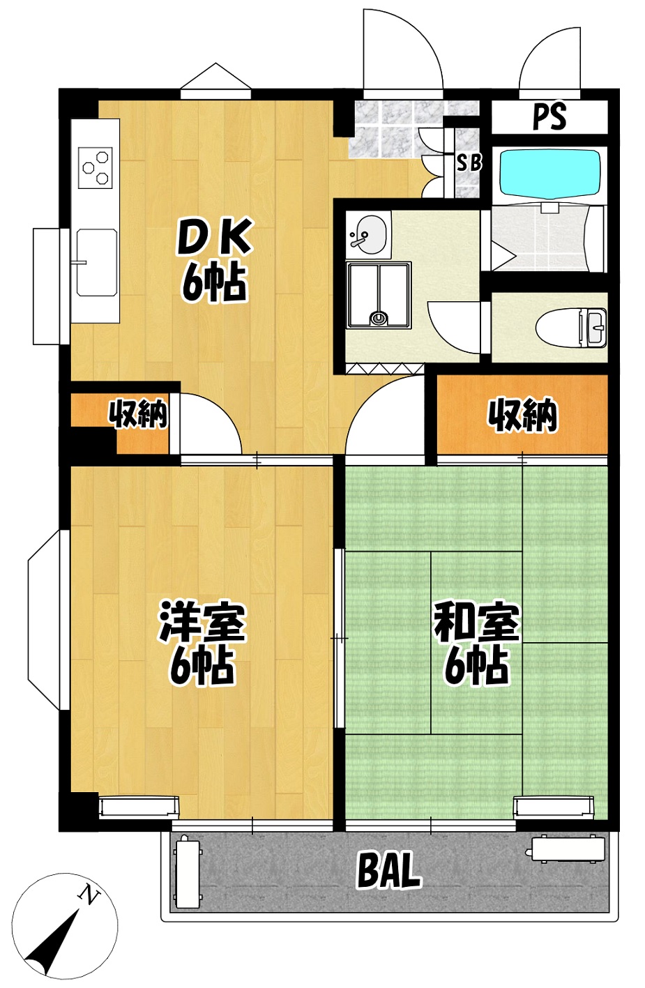 振分けで使いやすい間取りの2LDKで室内は綺麗です。