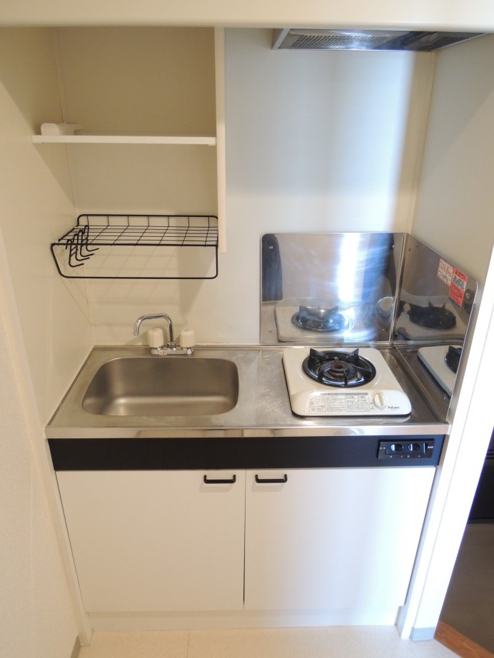 キッチンはコンパクトですが、1人分の食事を作るには十分です。