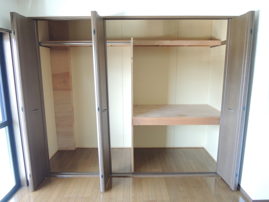 壁一面の大型クローゼットは天井高まであり収納豊富です。