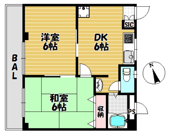 各部屋行き来きできる使いやすい間取りの2DKです。