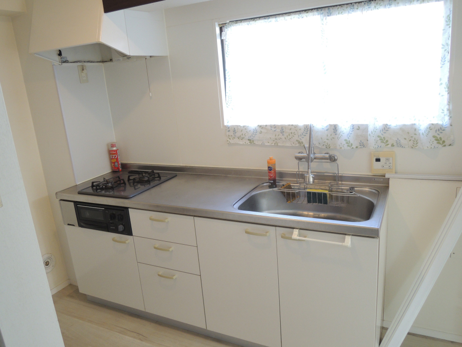 2口ガスコンロ&システムキッチンでテキパキと調理できます。